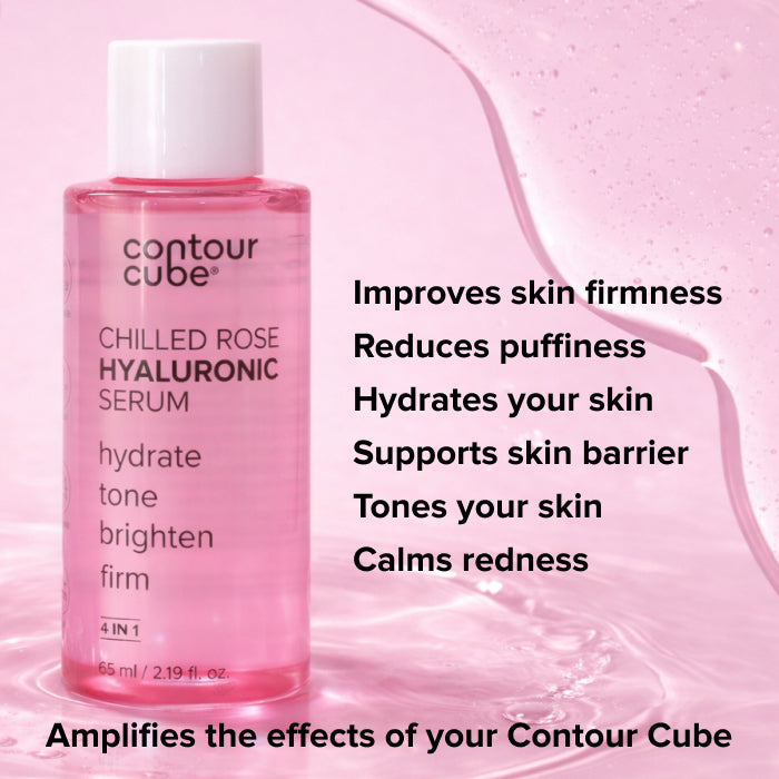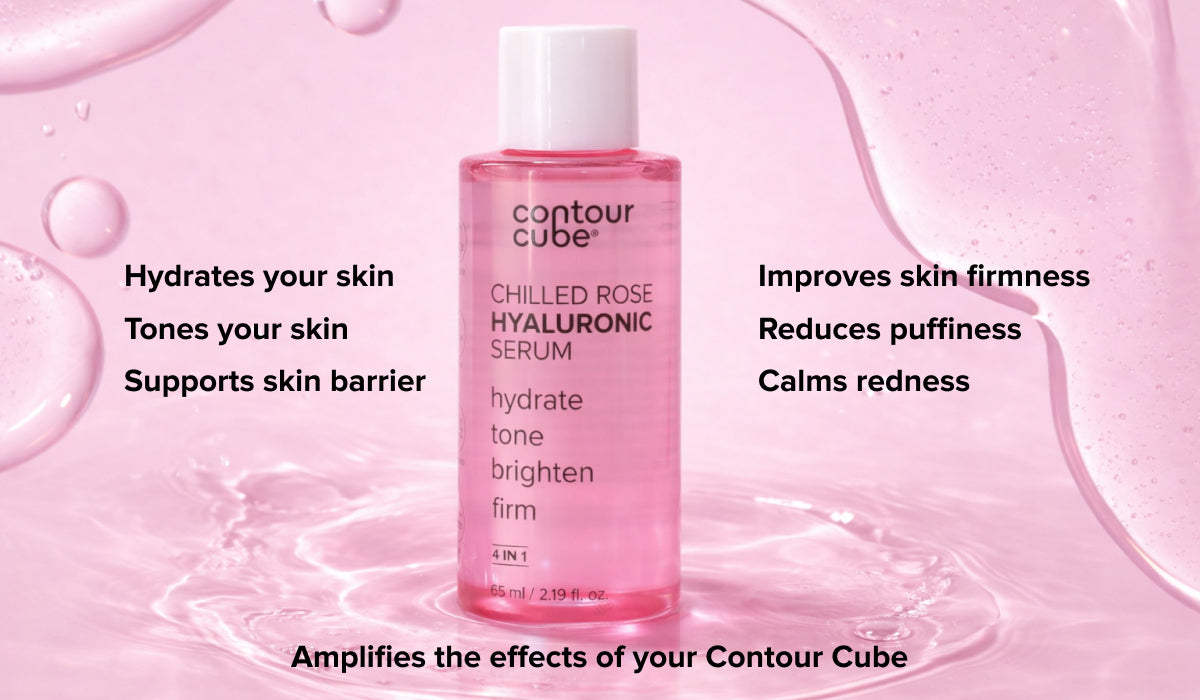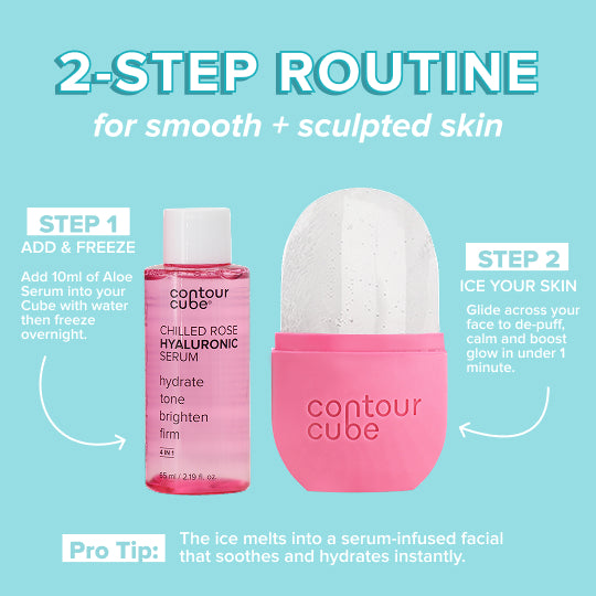 Cleanse → Contour Cube Ice Facial (frozen with ingredients or your Chilled Aloe Niacinamide Serum) → Moisturiser → SPF (AM). Ice helps boost absorption, calm the skin, and prep it for your products.