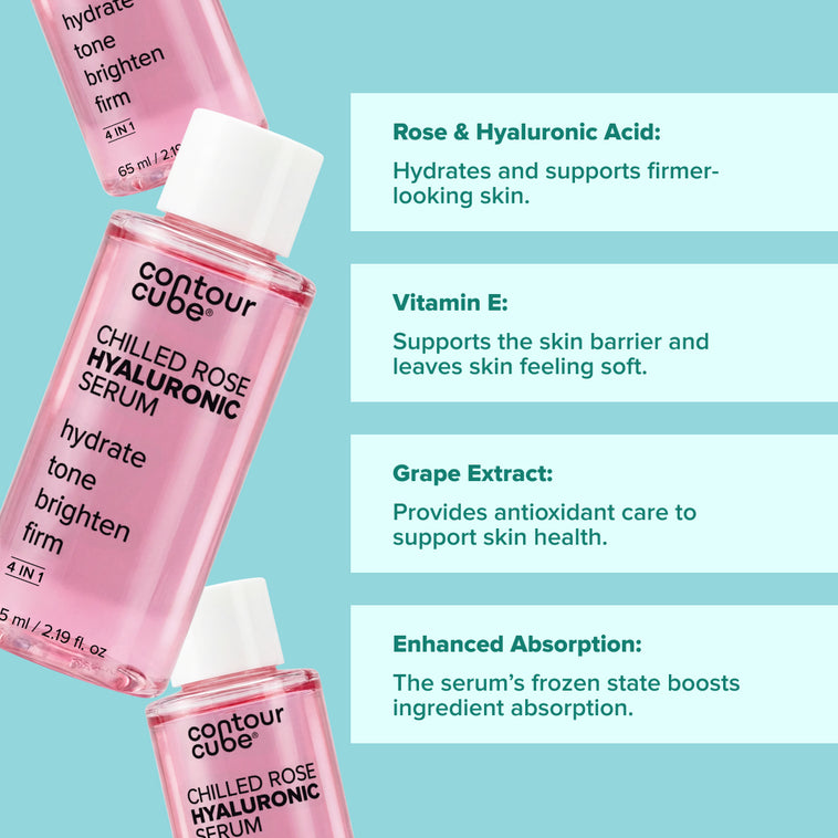 The original ice facial tool that lifts and de-puffs, paired with a freeze-friendly, 4-in-1 Chilled Rose Hyaluronic Serum that hydrates, tones, and firms the skin.